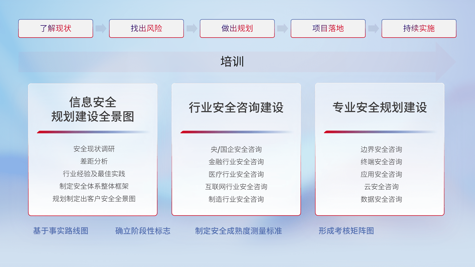 梳理客户信息安全现状调研、、、、差距分析结果,,,,结合行业先进经验及最佳实践,,,,制订客户的信息安全管控体系总结架构,,,最终形成一个完整的客户信息安全规划与建设的全景图。。。